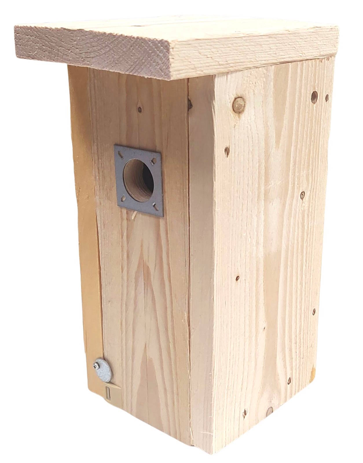Pönttö on valmistettu suomalaisesta kuusipuusta karkeasahaamalla, jotta linnunpoikasten kynnet saavat siitä kiinni ja pääsevät pöntöstä ulos.