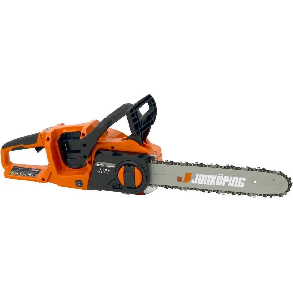 Akkukäyttöinen moottorisaha vaatii toimiakseen 2kpl 18V Jonköping akkuja Toimitus ei sisällä akkuja eikä laturia.