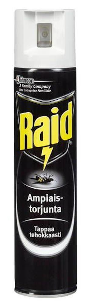 Raid Ampiaistorjunta on torjuu ampiaiset tehokkaasti ja varmasti. Tehoaine pyretriini on tehokas ampiaiskarkotin, joka tainnuttaa ampiaiset nopeasti kosketuksesta, mutta jää vaikuttamaan muutamaksi vuorokaudeksi käsitellylle pinnalle.