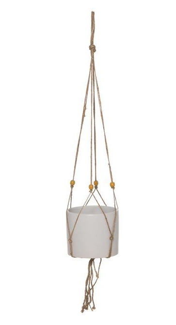 Kaunis puuhelmin koristeltu amppelinaru. Valmistettu juutista. Lajitelma, toimitus varastosaatavuuden mukaan. Parhaimmillaan noin 15 cm halkaisijaltaan olevien ruukkunen kanssa. Pituus 120cm.