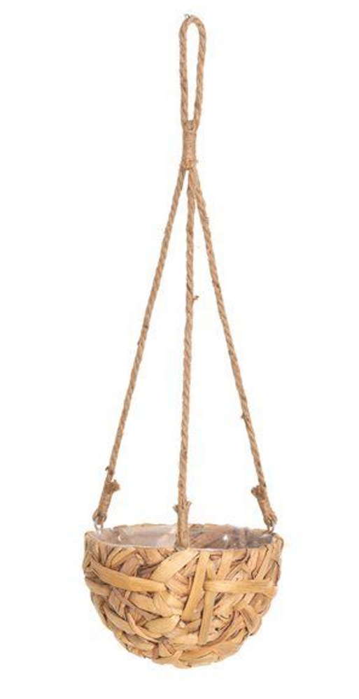 Kauniit, luonnollisen väriset punotut amppelikorit tuovat kerroksellisuutta vihersisustamiseen. Korissa on muovivuoraus.