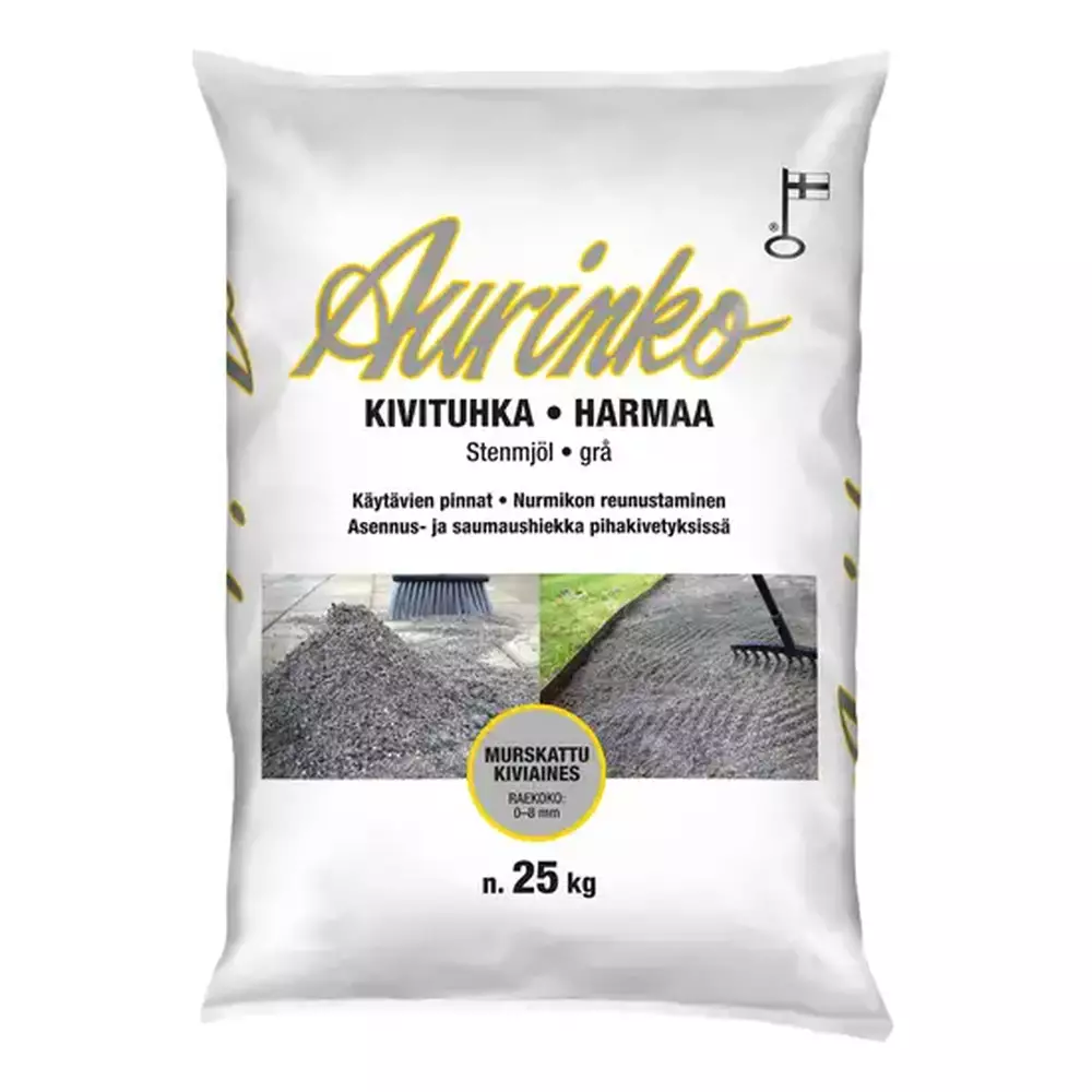 Aurinko kivituhka on hienojakoinen murskattu kiviaines, joka soveltuu monipuolisesti pihan ja puutarhan rakentamiseen. Se tiivistyy erinomaisesti ja kestää kovaa kulutusta, mikä tekee siitä luotettavan valinnan niin käytäville kuin pihakivien asennukseen. Helppo levittää ja työstää - lopputuloksena siisti, tasainen ja kestävä pinta.