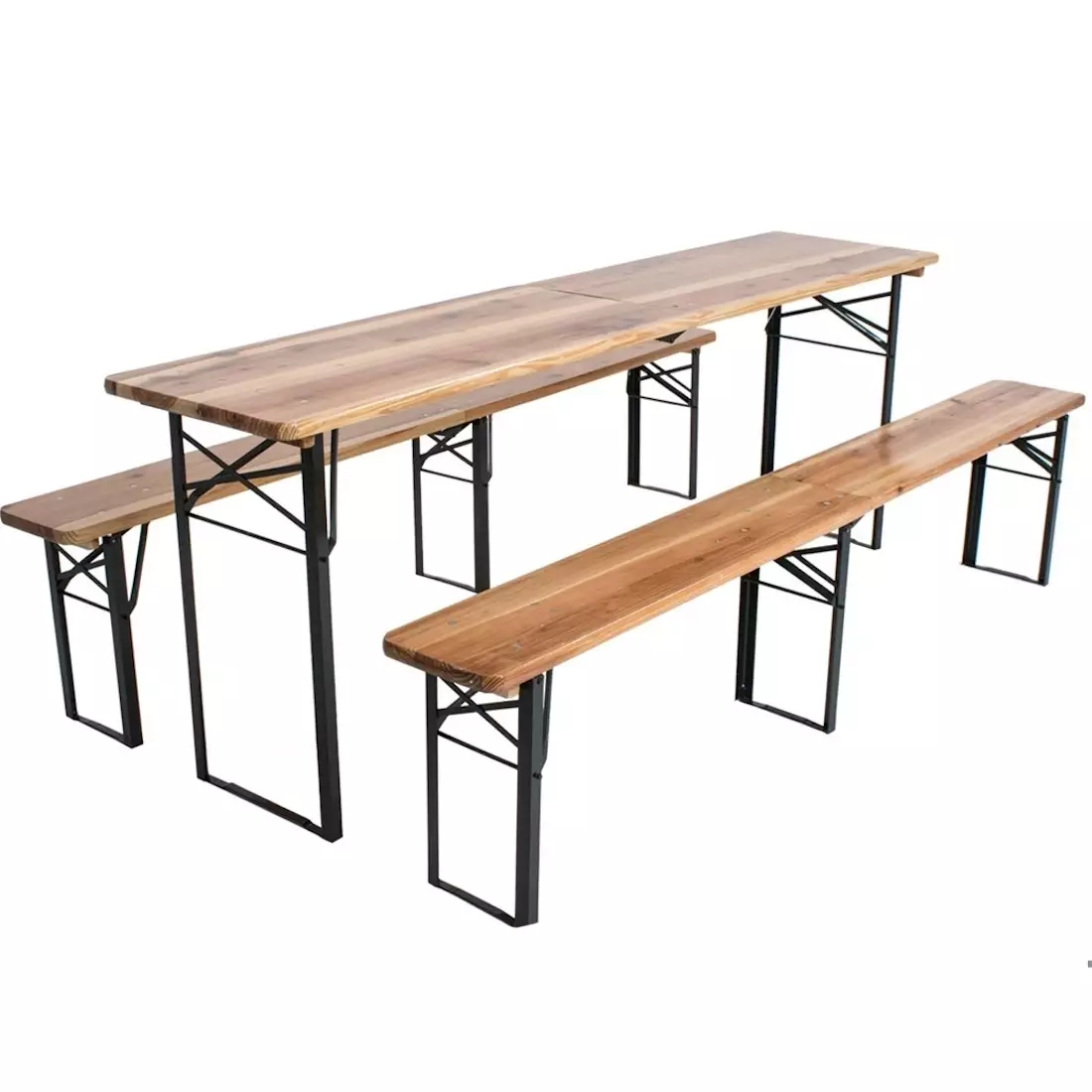 Suurempi festarisetti - mahtuu useampikin samaan aikaan samaan pöytään! Pitkän penkin keskellä ylimääräinen jalka tuomassa lisätukevuutta rakenteelle.