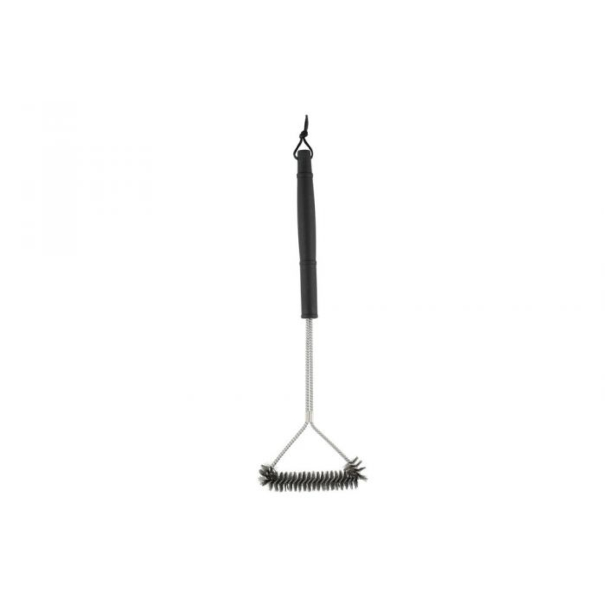 Grillin puhdistusharja pitkällä kahvalla. Harjakset ruostumatonta terästä, kahva muovia, nahkalenkki ripustusta varten. Voidaan käyttää myös polttimien puhdistamiseen.