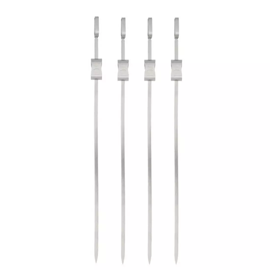 Vartaiden litteä muoto estää ruokia pyörimästä vartaan ympäri. Luistin avulla on helppo työntää ruoka pois vartaista. Pituus 40 cm. Käsinpesu.