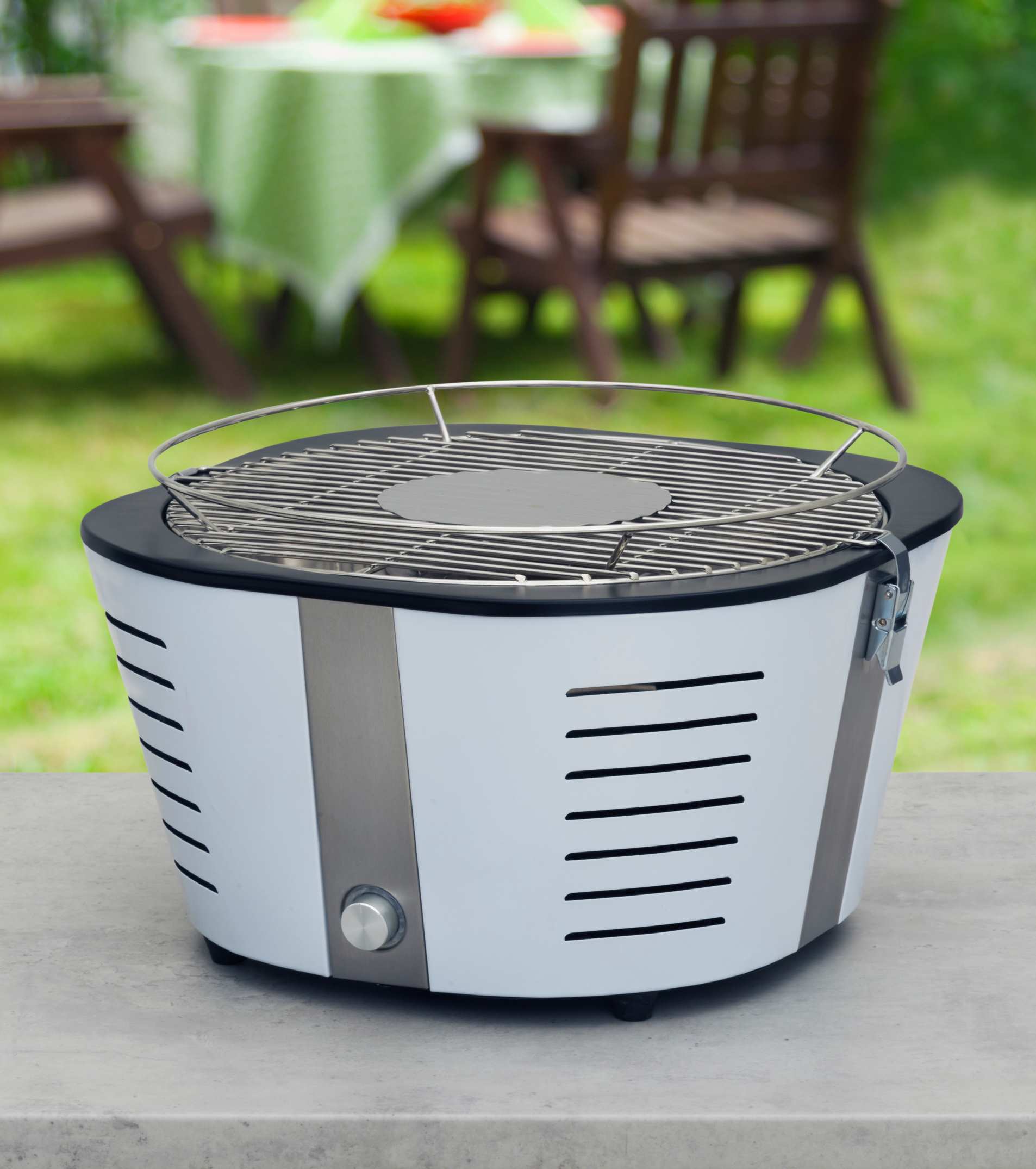 Savuttomassa hiiligrillissä on sisäänrakennettu tuuletin, joka puhaltaa ilmaa suoraan hiiliin. Hiilet palavat huomattavasti kuumempina, puhtaammin ja tehokkaammin.