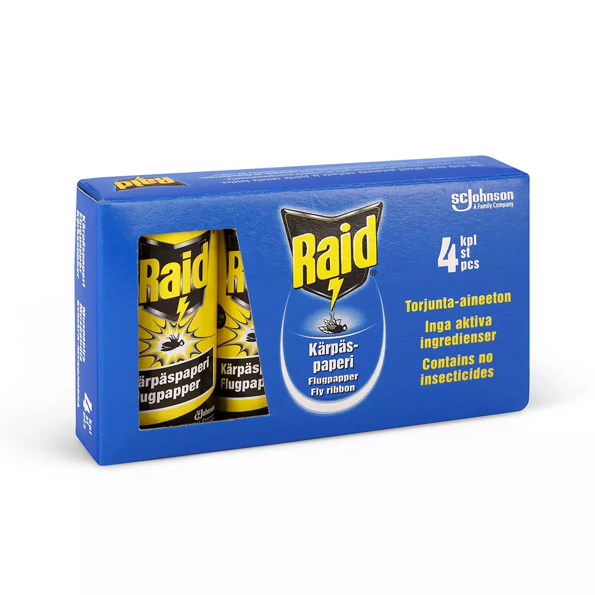 Raid Kärpäspaperi on tuoksuton ja torjunta-aineeton liimapintainen ansa kärpästen pyydystämiseen sisätiloissa. Kärpäspaperi vangitsee hyönteiset tehokkaasti ilman kemiallisia tehoaineita, ja sen käyttö on turvallista myös lapsi- ja lemmikkitalouksissa.