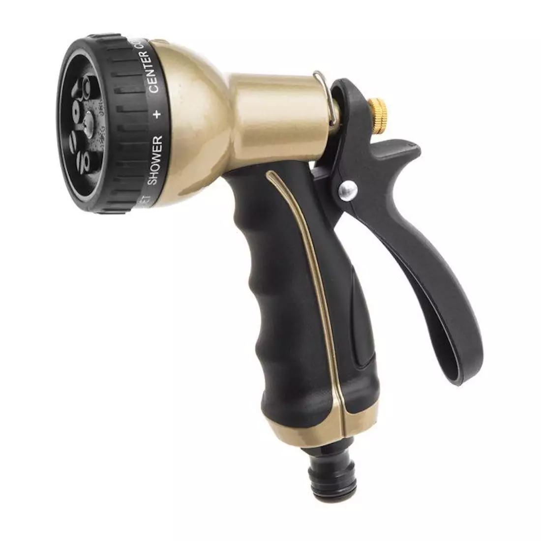 Laadukas metallirakenteinen kastelupistooli, jossa 9-toimintoinen suihkupää. Ergonominen pehmustettu kädensija sekä aukipito jatkuvaa suihkutusta varten. Soveltuu sekä kylmien että kuumien nesteiden suihkuttamiseen. Pikaliittimen urosliitäntä. Yhteensopiva myös muiden valmistajien tuotteiden kanssa.