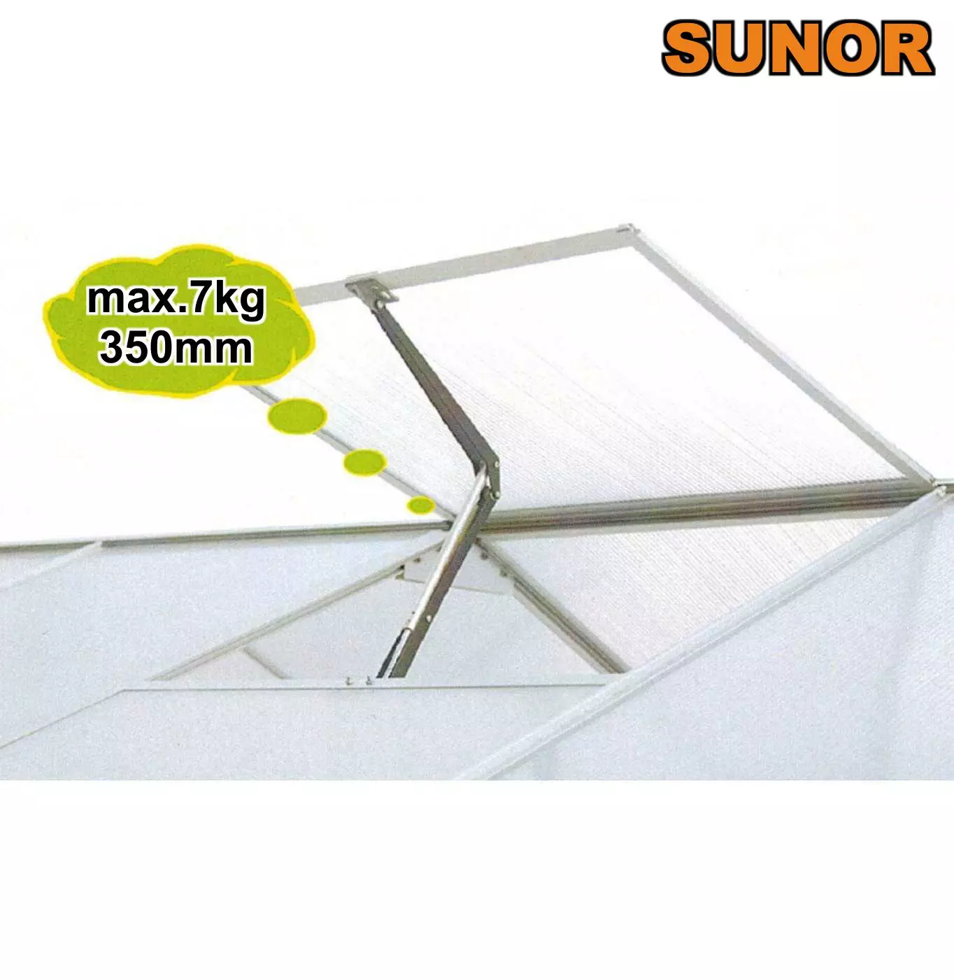 Avaaja jaksaa nostaa jopa 7 kg painoisen ikkunaluukun, ja luukun avautumismatka on enintään 35 cm. Laite on helppo asentaa mukana tulevilla kiinnitystarvikkeilla, ja suljettuna sen pituus on noin 34 cm. Tukeva metallirunko ja hillitty väritys takaavat kestävyyden ja tyylikkään ulkonäön, joka sulautuu osaksi kasvihuoneen rakenteita.