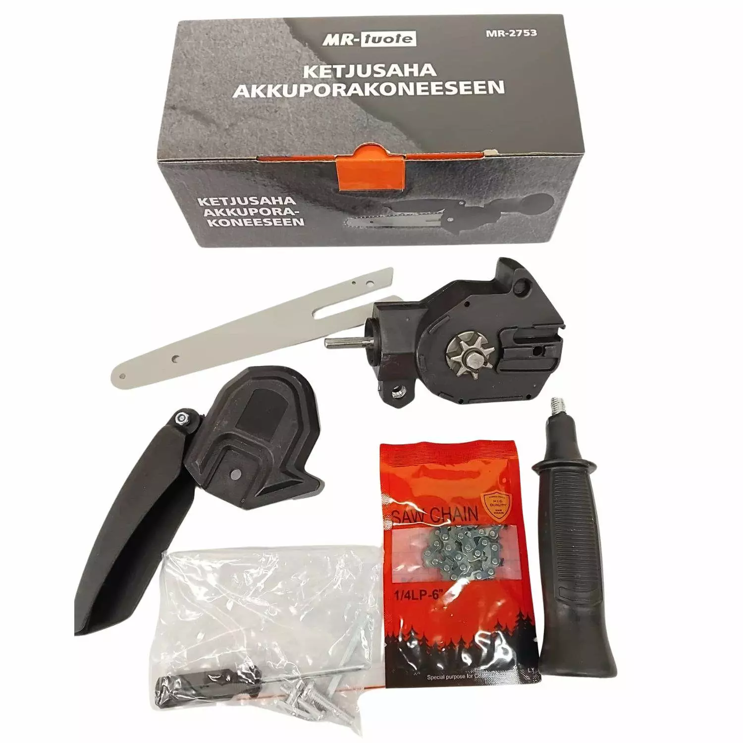 Kätevä lisälaite, jolla saat akkuporakoneesi muunnettua ketjusahaksi. Ketjusaha on näppärä esimerkiksi oksien harventamisessa ja pihatöissä, mutta miksei myös pienemmissä remonttikohteissa joissa ketjusahalle on tarvetta.