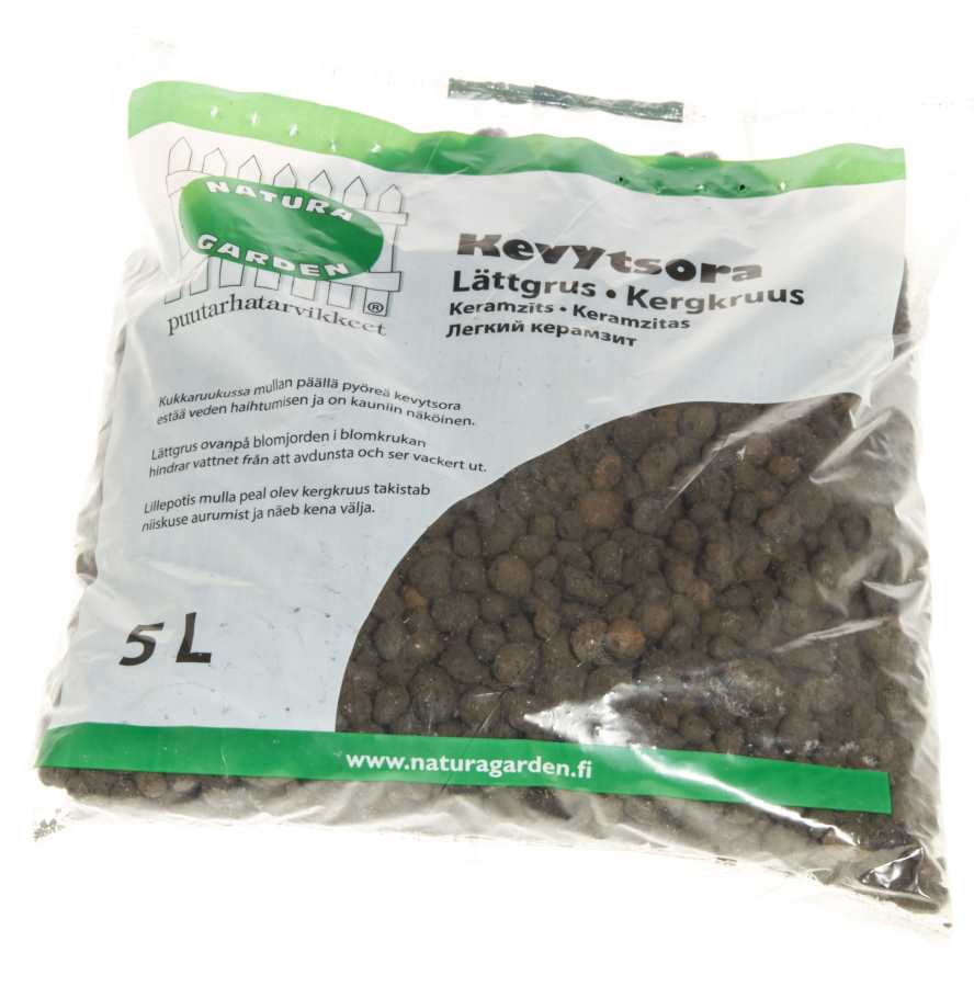5L:n säkki kevytsoraa esimerkiksi kukkaistutuksiin tai muihin kohteisiin.