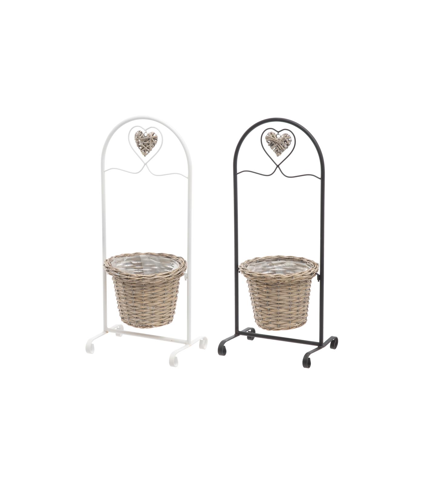 Metallirunkoinen kukkateline pajurottinkisella kukkaruukulla. Sopii erinomaisesti esimerkiksi ulko-oven tai portin pieleen. Tuotteen mitat: 31 x 25 x 75 cm, ruukun koko: 26 x 26 x 18 cm.