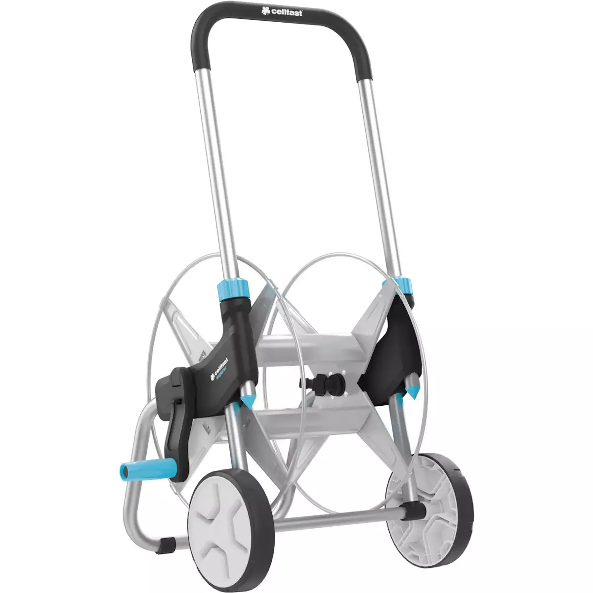 Korkealaatuisesta teräksestä ja alumiinista valmistettu Cellfast-letkukärry, johon mahtuu 60 metriä 1/2 kasteluletkua. Explorer-letkukärryn kelan muodon ansiosta kelaaminen on helpompaa eikä letku kierry. Leveän pyörävälin ansiosta kärry kulkee vakaasti. Lisäksi sitä on mukava liikutella ja siinä on helppo säilyttää pitkääkin letkua. Kärryn jalka työntyy maahan ja pitää kärryn pystyssä uloskelauksen aikana. Kärryssä on ergonominen taittuva ja kumipäällysteinen kahva. Letku ei sisälly toimitukseen.