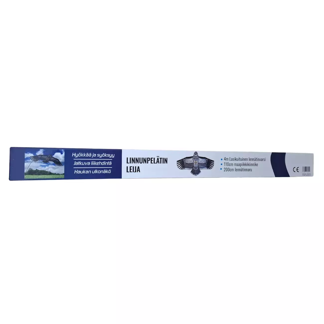 Tämä realistinen haukkaa muistuttava linnunpelätin leija toimii luonnonmukaisena lintupelottimena puutarhassa, kasvimaalla, mökkilaiturilla tai pihapiirissä. Petolintua jäljittelevä leija liikkuu ilmassa heikossakin tuulessa, mikä saa varikset, lokit ja muut haittalinnut pysymään loitolla.