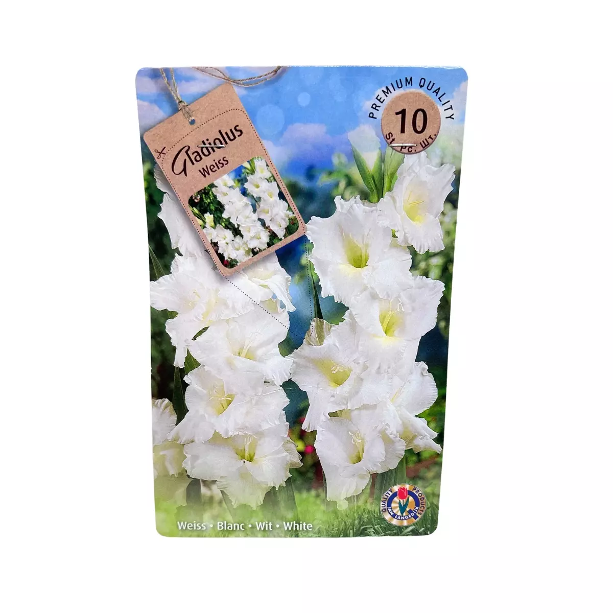 Gladiolus Weiss White kukkii puhtaan valkoisena ja tuo istutuksiin raikkaan ja selkeän ilmeen. Suuret, hieman röyhelöiset kukat muodostuvat korkeisiin varsiin ja avautuvat vaiheittain alhaalta ylöspäin. Valkoinen sävy sopii hyvin yhteen muiden kukkien kanssa ja toimii myös yksin istutettuna.