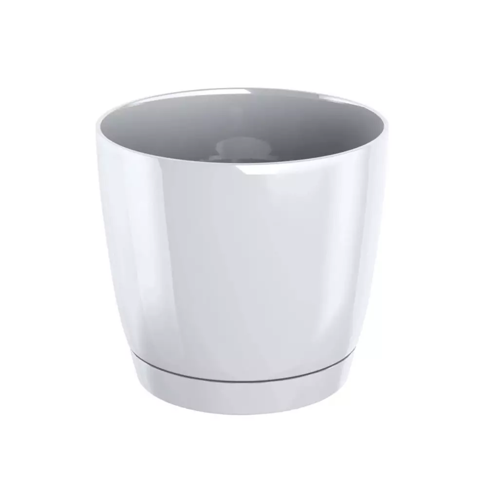 Coubi Round -muoviruukku on tyylikäs ja moderni valinta kodin tai terassin kasveille. Kiiltäväpintainen muotoilu antaa ruukulle viimeistellyn ilmeen, ja mukana tuleva alusastia auttaa säilyttämään sopivan kosteustason kasveille.