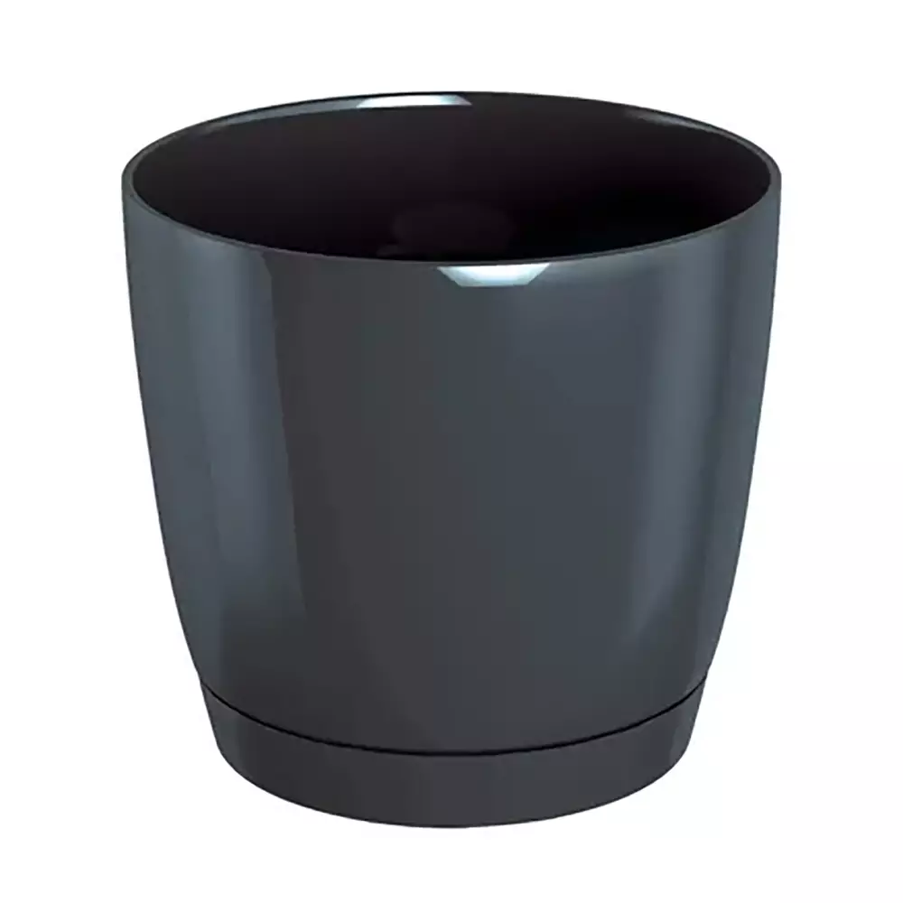 Coubi Round -muoviruukku on tyylikäs ja moderni valinta kodin tai terassin kasveille. Kiiltäväpintainen muotoilu antaa ruukulle viimeistellyn ilmeen, ja mukana tuleva alusastia auttaa säilyttämään sopivan kosteustason kasveille.