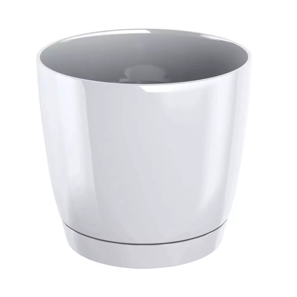 Coubi Round -muoviruukku on tyylikäs ja moderni valinta kodin tai terassin kasveille. Kiiltäväpintainen muotoilu antaa ruukulle viimeistellyn ilmeen, ja mukana tuleva alusastia auttaa säilyttämään sopivan kosteustason kasveille.