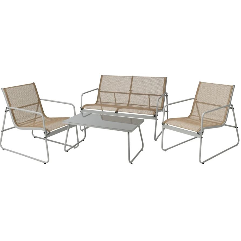 Moderni puutarhakalustesetti terassilla oleskeluun. Terassikalustesetti on helppohoitoinen ja säänkestävä. Hyvät tuolit ja sohva takaavat mukavan istuma-asennon. Sohvapöydässä lasikansi, joka on helppo pitää puhtaana.
