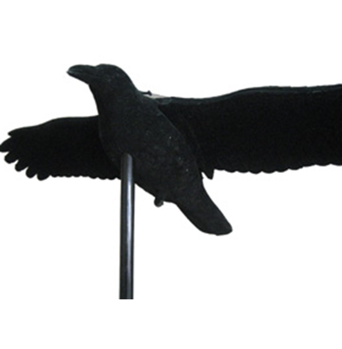 Pelotinlintu korppi lintujen karkoittamiseen. Kiinnitys maahan metallisella maapiikillä.