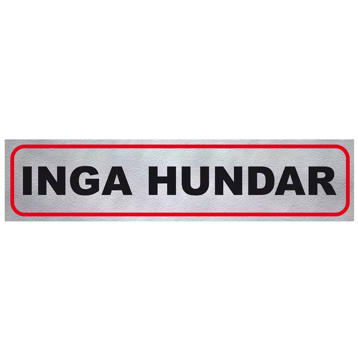 Veden- ja säänkestävä itseliimautuva infotekstitarra. Ulkonäkö metallia muistuttava, hopeanvärisellä taustalla mustat kirjaimet punaisessa kehyksessä, heijastava.