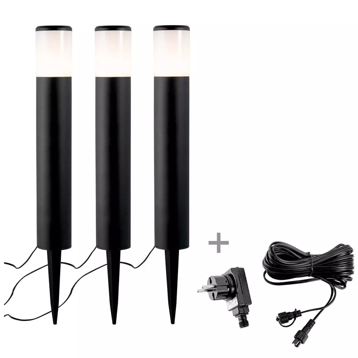 Pakkauksessa on mukana muuntaja ja 8 metrin syöttökaapeli, johon valaisimet voidaan liittää helposti mihin tahansa kohtaan kaapelissa. Asennus onnistuu ilman erikoistyökaluja ja mukana tulevien maapiikkien avulla valaisimet pysyvät tukevasti paikoillaan. Yhden muuntajan (12 W) taakse voi liittää jopa 12 pollarivalaisinta (1 W), joten settiä on helppo laajentaa.