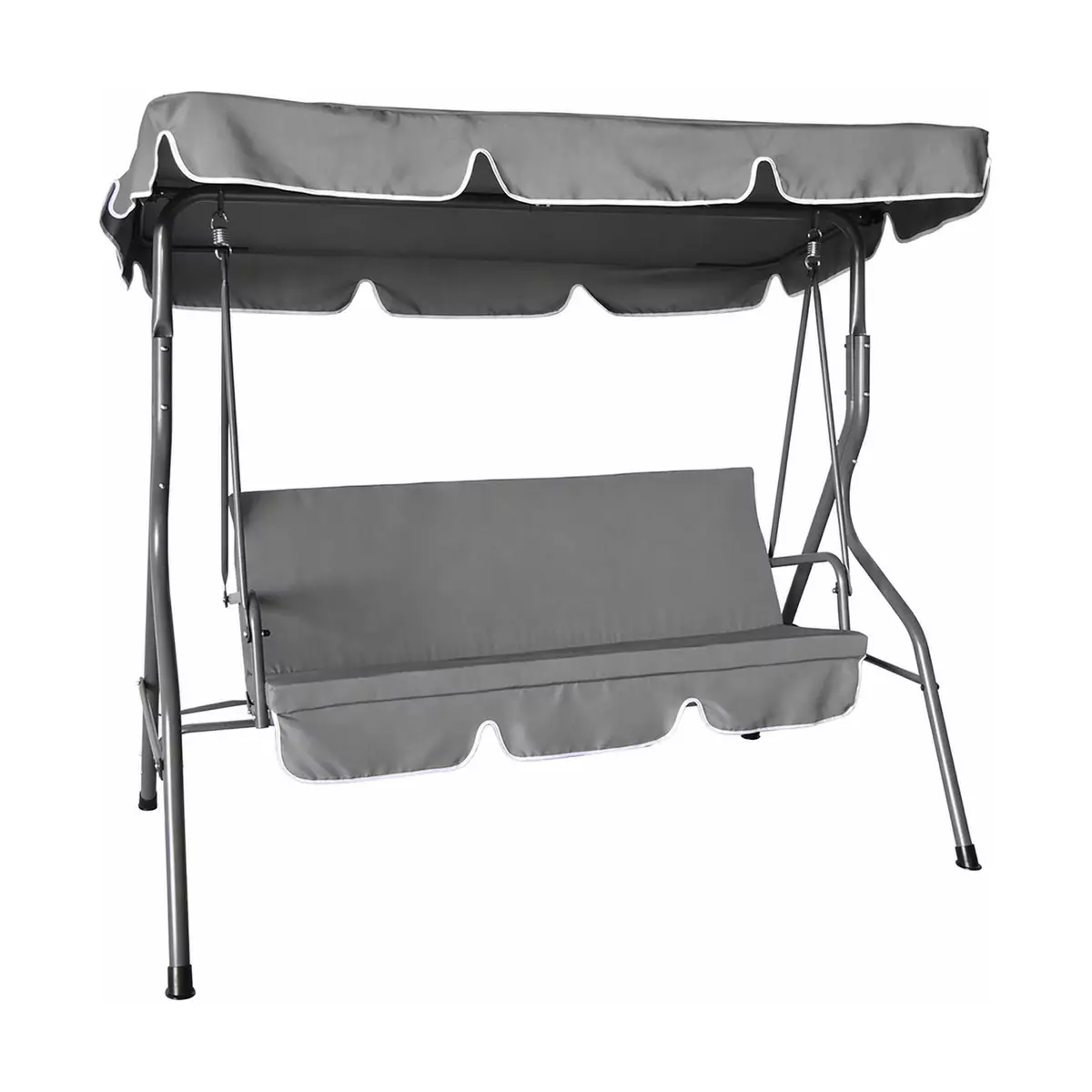 Tyylikäs harmaa puutarhakeinu katoksella tarjoaa mukavan paikan rentoutumiseen ulkona. Kolmen hengen keinu sopii hyvin yhteisiin hetkiin perheen tai ystävien kanssa ja tuo pihalle viihtyisän oleskelupaikan. Klassinen muotoilu sopii monenlaisiin ympäristöihin, ja pehmustettu istuin tekee keinumisesta miellyttävää pidemmänkin aikaa. Katos suojaa suoralta auringonpaisteelta ja tekee käytöstä mukavampaa myös lämpiminä kesäpäivinä.