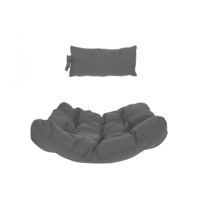 Kaksiosainen pehmustesarja sopii Hawaiji-riipputuoliin. Harmaa on helppo värivalinta ulkotiloihin anteeksiantavuutensa vuoksi erityisesti perheille ja lemmikkitalouksille.