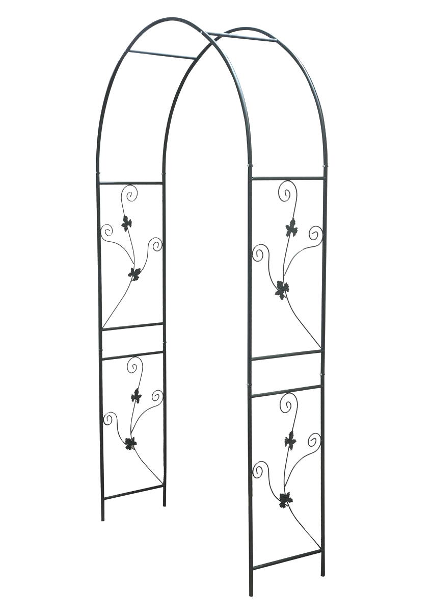 Koristeellinen metallista valmistettu kaariportti pihaan ja puutarhaan. Portti soveltuu hyvin myös erilaisten köynnöskasvien tukemiseen.