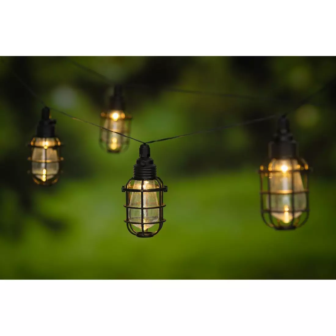 Tyylikäs ripustettava aurinkokennolla toimiva valoketju puutarhaan. Lämminvalkoinen valo. Aurinkopaneeli: 2V 80mA Polysilicon. Akku: 1.2V 300mAH AA NI-MH. Ladattava. 2 m johtokaapeli, LED 50 cm välein, polttimon koko 7 x 13 cm. 10 x lämminvalkoinen F5 LED. Kytkintoiminto: päällä/pois/vilkkuva.
