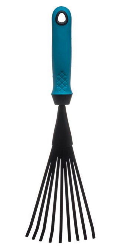 Näppärän kokoinen pieni lehtiharava esimerkiksi istutusalueiden siistimiseen. Kevyt ja kestävä. Muovinen soft grip -kädensija.