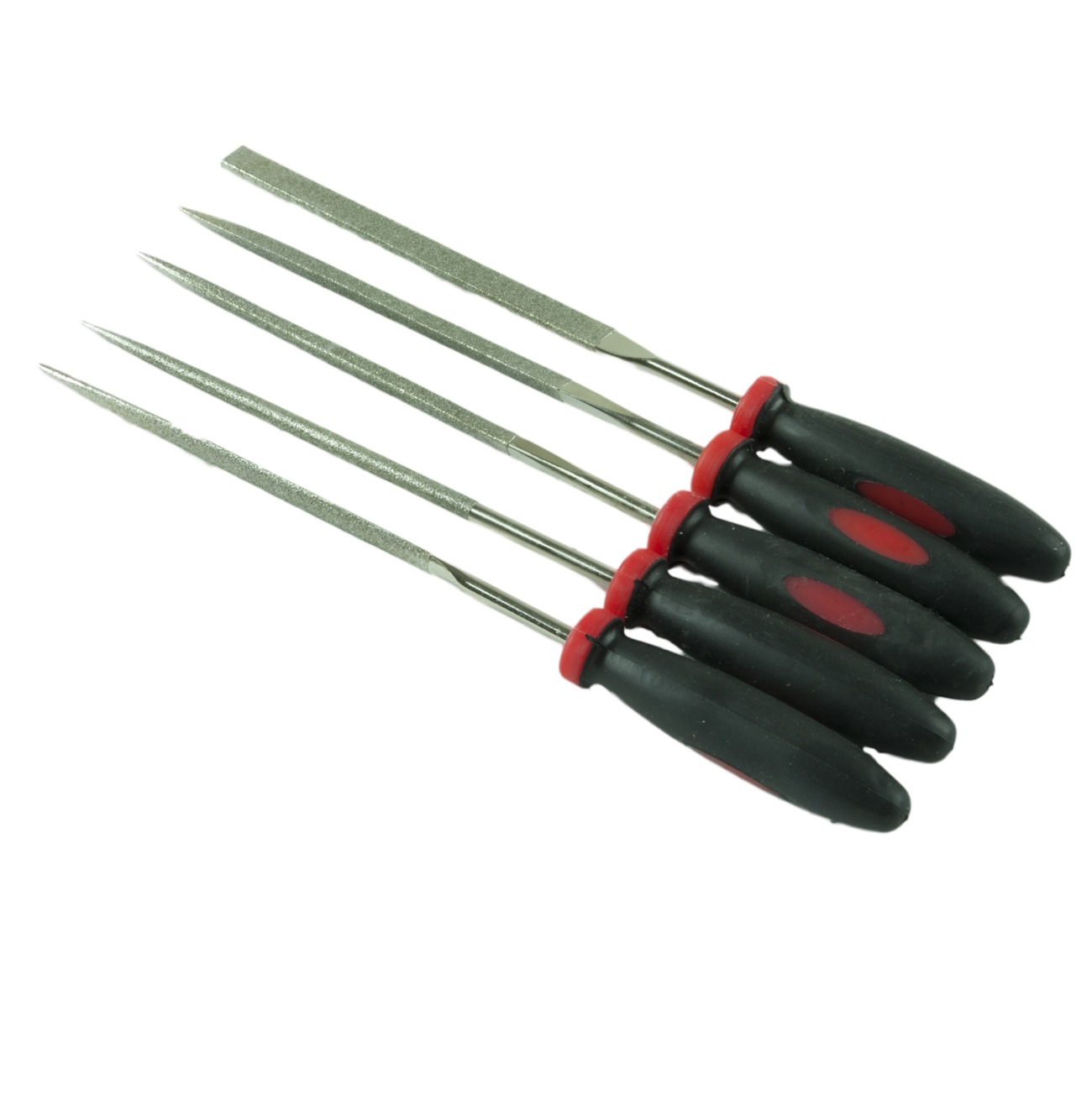 5-osainen timanttiviilasarja tarkkaan viilaamiseen. Erimuotoisten viilojen avulla viilaat ja teroitat kätevästi myös vaikean muotoisia ja pieniä kappaleita. Viilojen koko 3 x 140 x 70 mm. Muovisesta kädensijasta saa tukevan otteen. Pakkaus sisältää muodot: suorakulma, kolmio, neliö, sulka ja pyöreä.