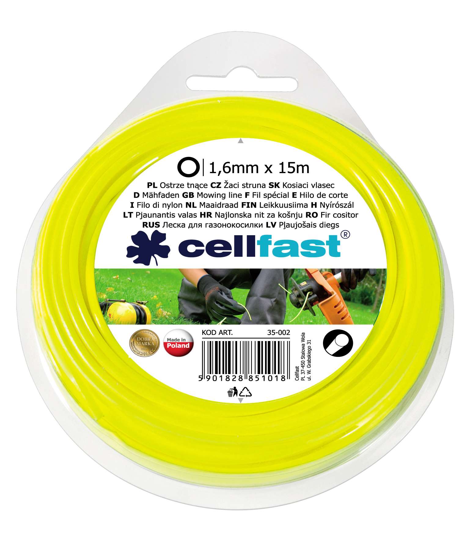 Varmasti kestävä Cellfast-trimmerin siima, jonka pyöreän profiilin ansiosta heinikoiden trimmaaminen käy joutuisasti ja siististi.