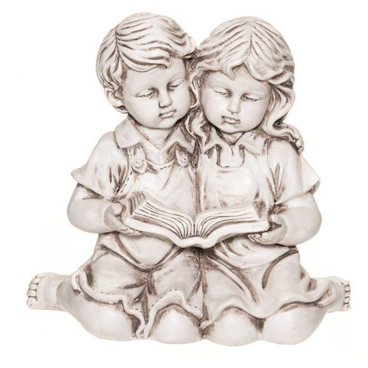 Tyttö ja poika lukemassa 25cm 4Living Puutarhakoriste tyttö ja poika