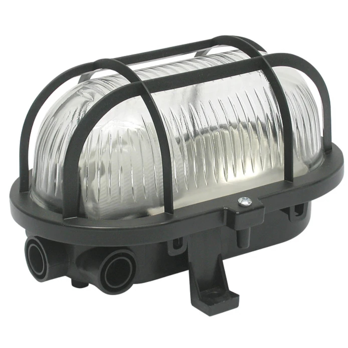 Ulkovalaisin mustalla muovi ristikolla lasinen suojakupu 60W IP44 E27