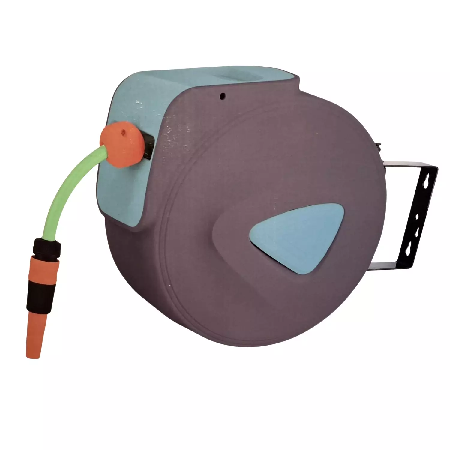 Pituus 20m + 2m. Letku 1/2", maks. 8 bar. Suuttimella ja automaatisella sis. kelauksella. Ulosveto pysäytystoiminnolla, liitosletku 1,5m. Liitin 3/4". Kääntyvä seinäkiinnike.