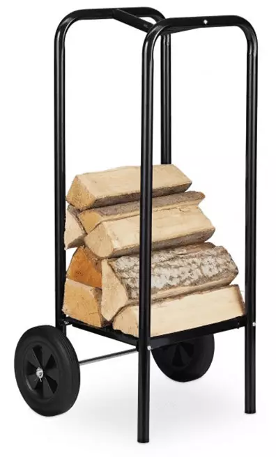 Halkokärry pyörillä helpottaa polttopuiden kuljettamista ja noutamista varastosta.