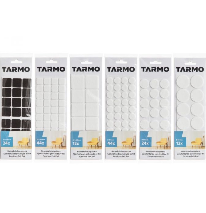 Huopatarra huonekalujen jalkoihin. Pehmeä, suojaava, ääntä vaimentava. Huopatarrat huonekalujen jalkojen alla suojaavat lattioita naarmuuntumiselta. Paketissa yhdenlaisia tarroja. Lajitelmatuote, toimitus varastosaatavuuden mukaan.