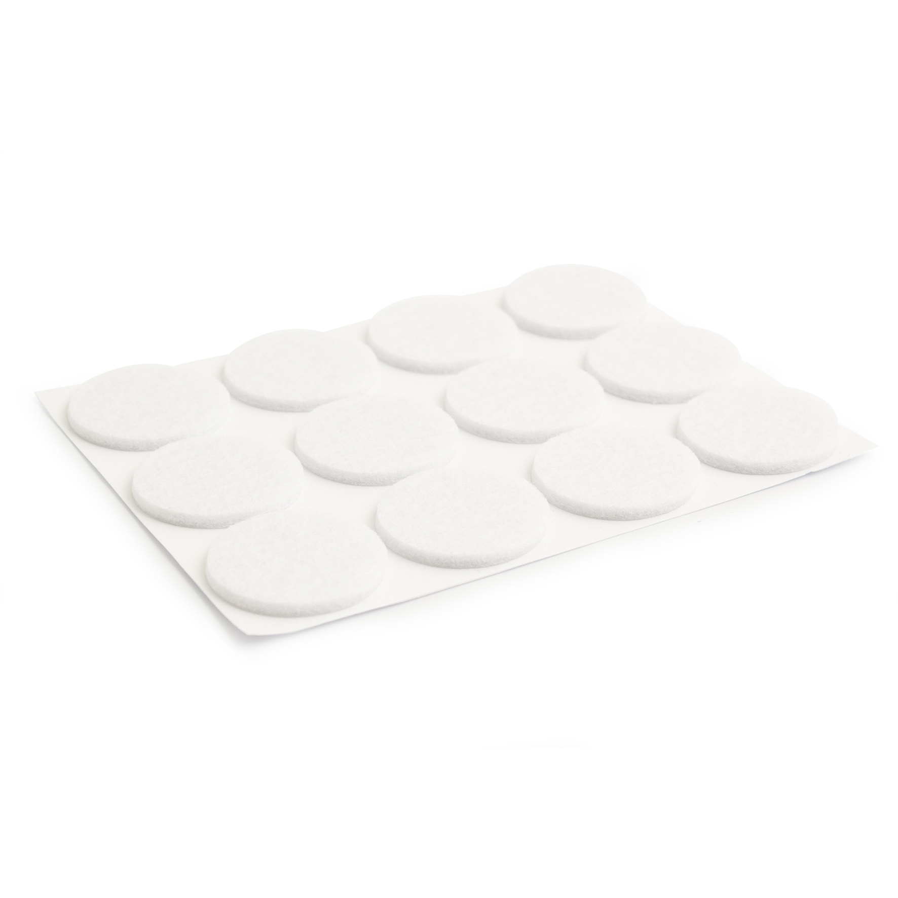 HUOPATASSU 28mm Valkoinen huopa 12kpl/pkt 106 HABO Tarrakiinnitteinen lattiasuoja huopaa. Halkaisija 28 mm. Pakkauksessa 12 kpl.