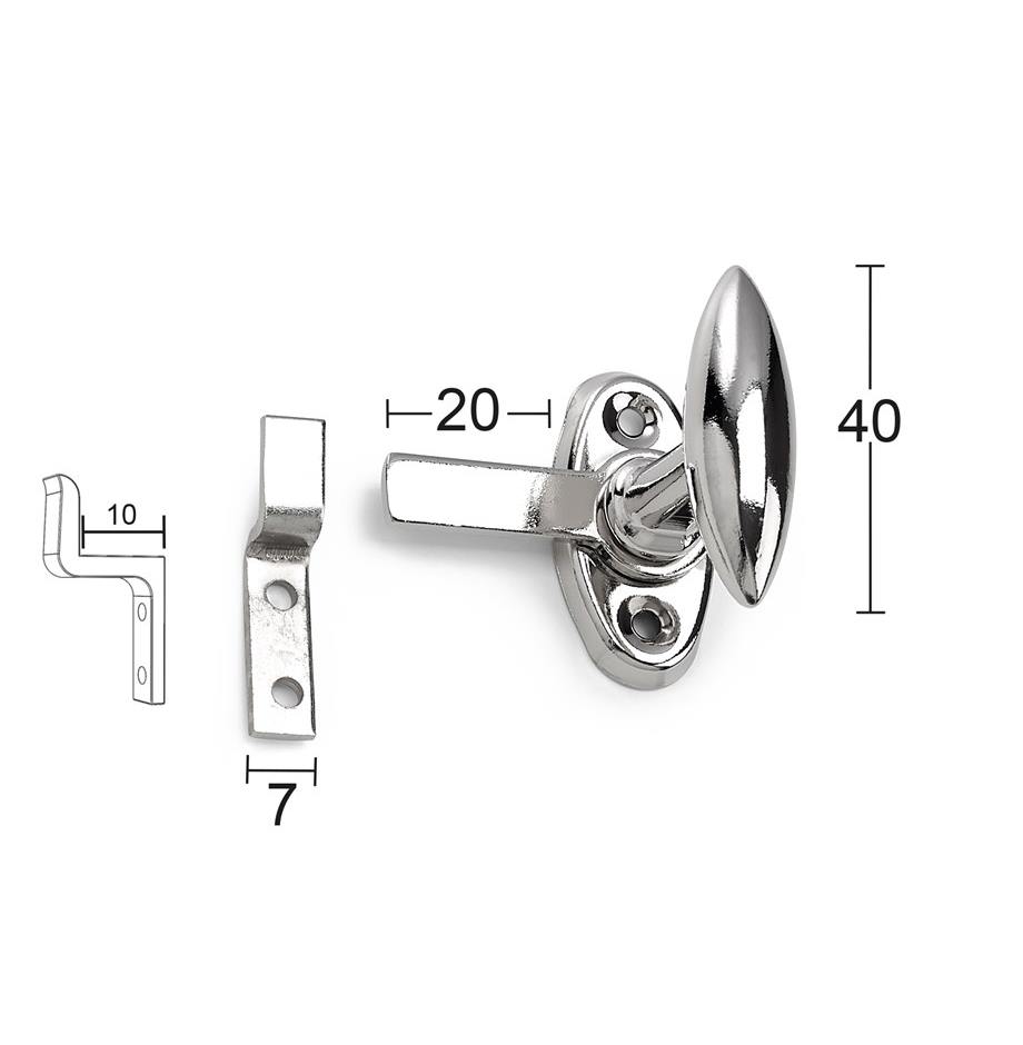 Ikkunasuljin messingistä. 10 mm haka asennusta varten sisältyy. IP-pakkaus sisältää ruuvit.