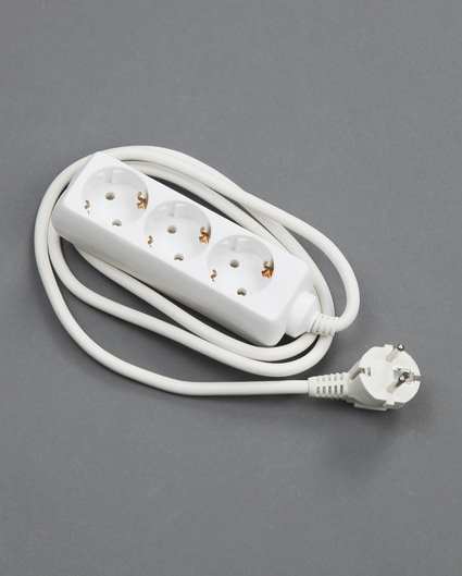 Turvallinen sisäkäyttöön tarkoitettu maadoitettu jatkojohto pitkällä 3m:n johdolla.