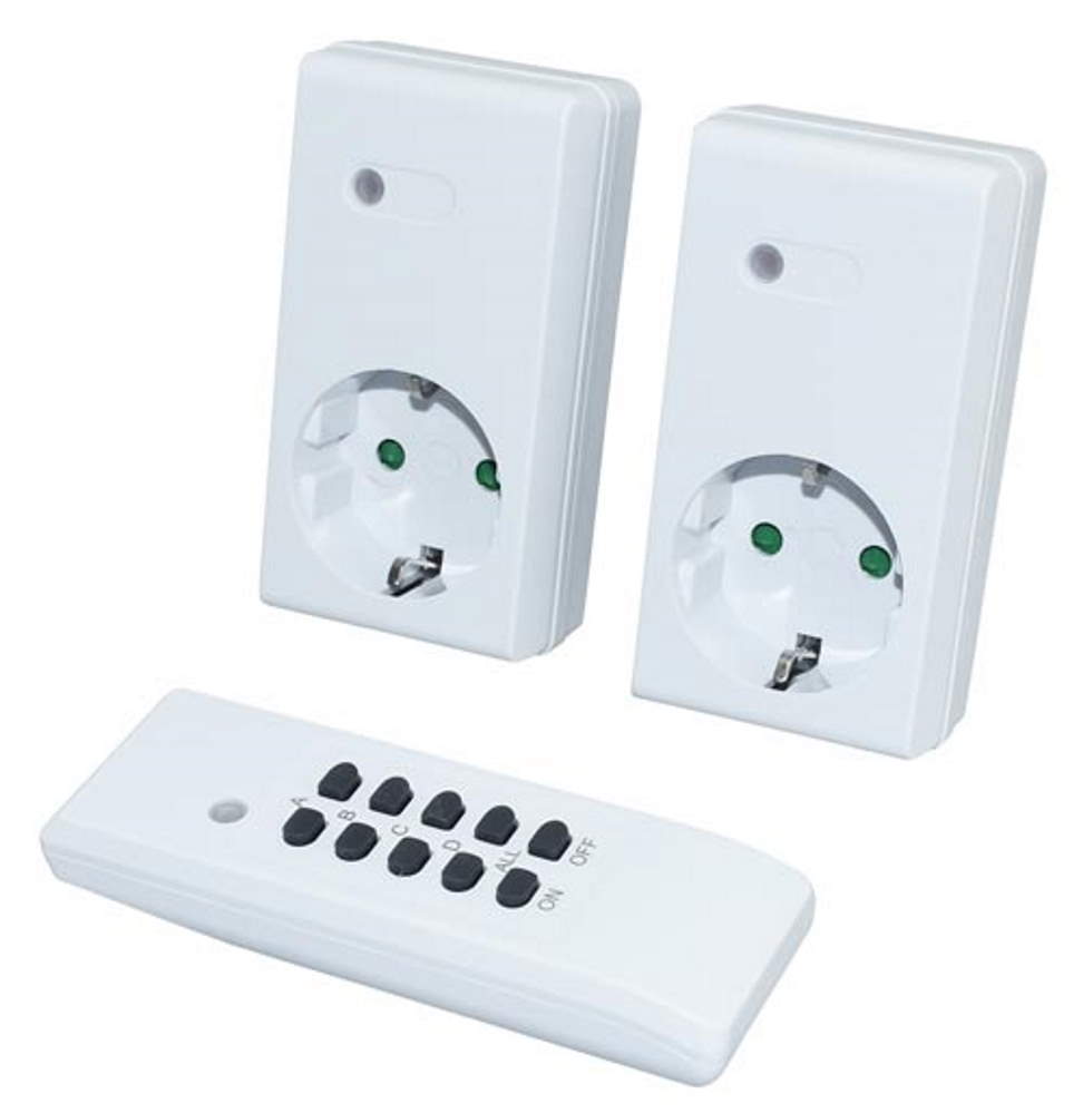 Kaksiosainen kauko-ohjattava pistorasia soveltuu kuiviin sisätiloihin. Käyttöalue 30 metriä (avoin tila). 16 A, 3600 W/pistorasia. Radiotaajuus 433,92 MHz. Kauko-ohjaimen paristot 2 kpl AAA 1,5 V sisältyvät pakkaukseen. 230 V 50 Hz. IP20.