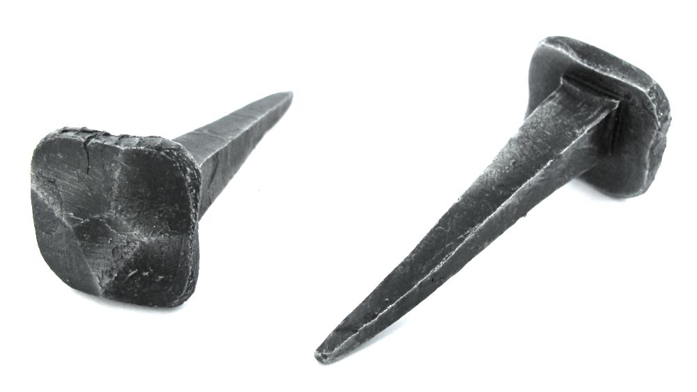 Pakkaus sisältää 2kpl uniikkeja, takorautaisia nauloja.