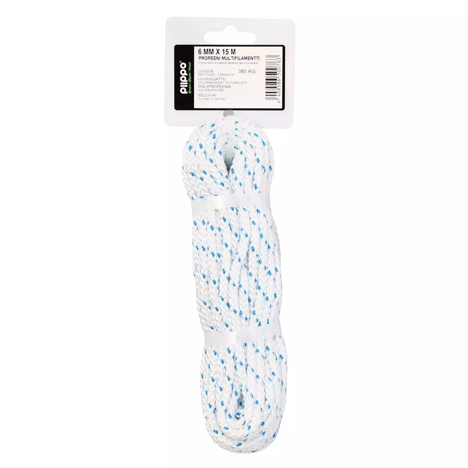 Piippo köysi on valmistettu kevyestä ja kestävästä polypropeeni multifilamentista ja se on 6 mm paksu ja 15 metriä pitkä. Köysi on kelluva, pehmeä käsitellä ja se sopii erinomaisesti monipuoliseen käyttöön niin kotona, mökillä kuin vapaa-ajan veneilyssä. UV-suojakäsittely takaa säilyvyyden myös auringonvalossa, ja tuttu sinivalkoinen väri tekee köydestä helposti tunnistettavan. Piippo köydet ovat tunnettuja luotettavuudestaan ja kestävyydestään. Piippo on kotimainen laatumerkki.