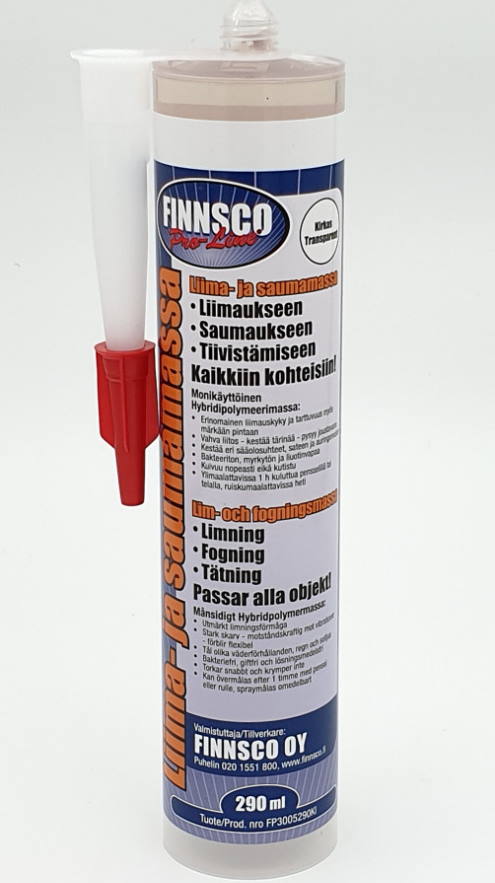 Paransimme kirkkaan Finnsco Pro Line® Liima- ja saumamassan ominaisuuksia. Massa tarttuu nyt lujempaa kuin aikaisemmin ja se liimaa myös pakkasessa.