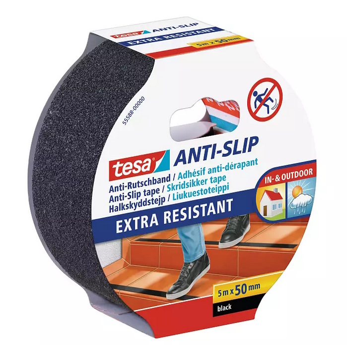 tesa® Anti-Slip Bath & Shower liukuesteteippi on optimaalinen ratkaisu kun haluat estää kaatumisen tai onnettomuuden kosteilla ja liukkailla pinnoilla. Akryyliliiman erinomaisen tarttuvuuden vuoksi saat teipillä turvallisen jalansijan esim. kylpyammeissa ja suihkukaapeissa. Teippi on läpinäkyvä ja sopii useimpiin kylpyhuoneisiin. Tewipin pinta on myös mukava jaloille. Teippi on DIN 51097 testattu ja sitä on helppo asentaa ja leikata sopiviin mittoihin.