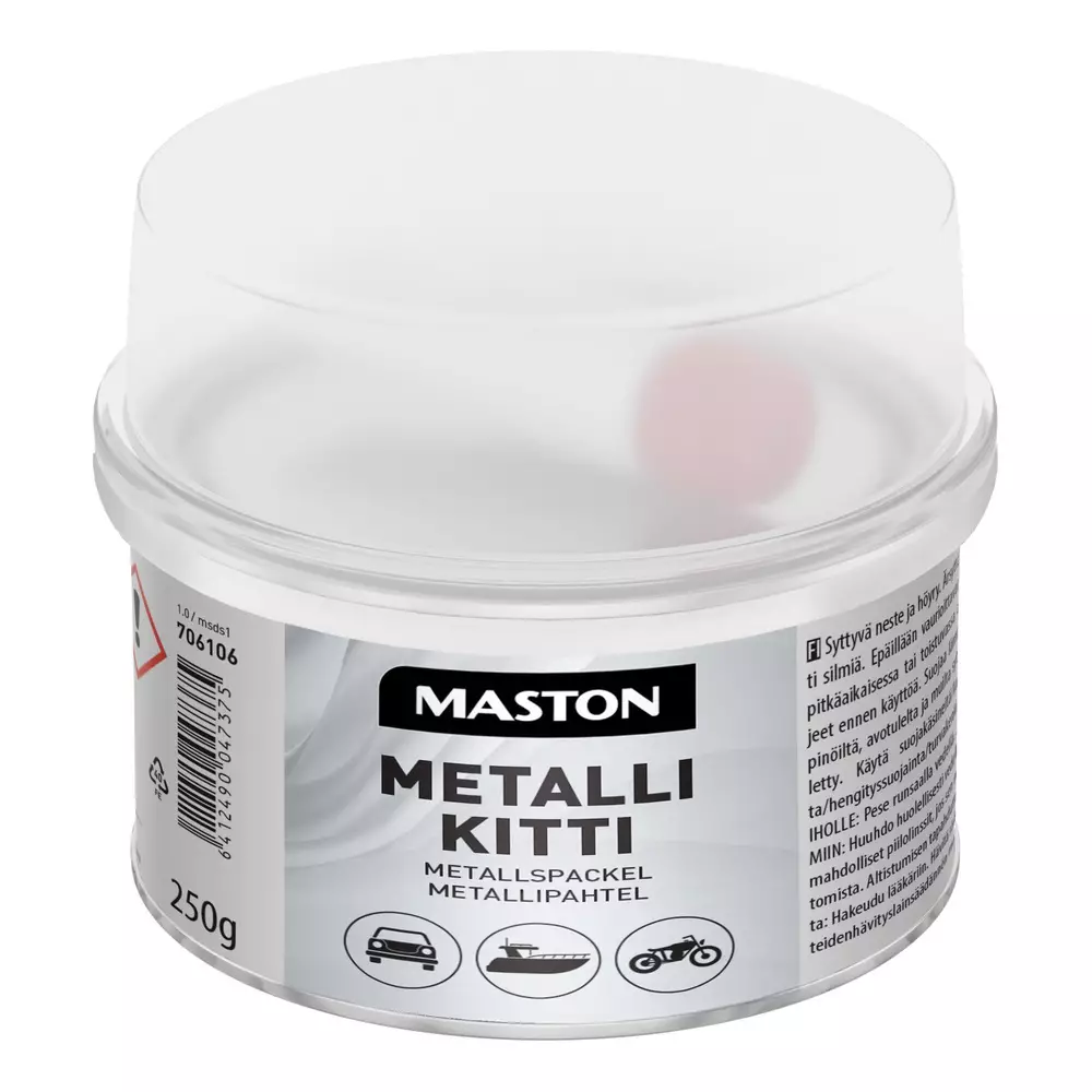 Maston metallikitti on 2-komponenttinen polyesterikitti, joka sisältää alumiinipigmenttejä. Se soveltuu erityisesti auton korin korjaustöihin, mutta käy myös moniin muihin tasoitus- ja korjauskohteisiin. Kitti tarttuu erittäin hyvin metallipinnoille ja kestää tärinää sekä lämpötilavaihteluita.