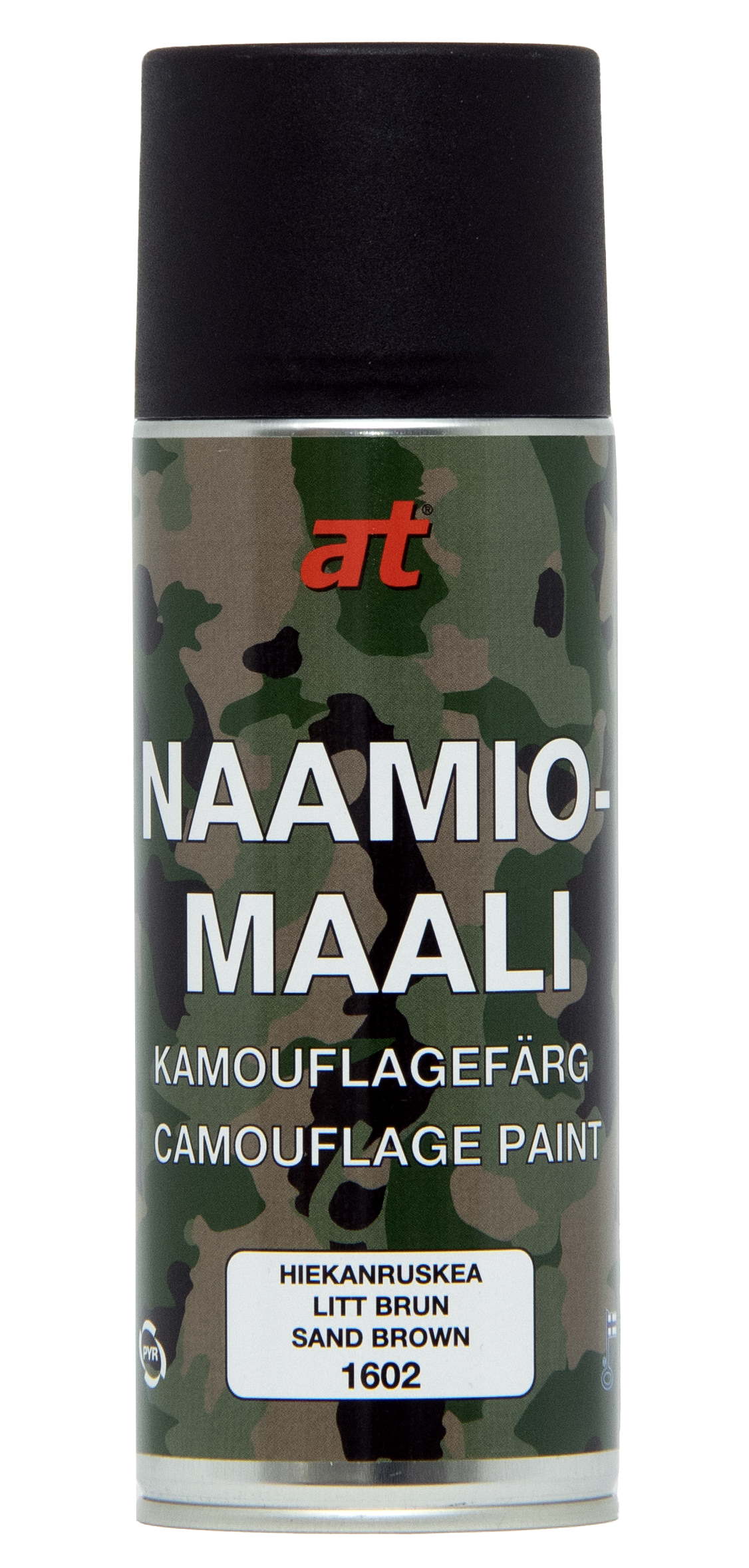 AT-Naamiomaali on heijastamaton mattapintainen naamiospraymaali ulko- ja sisäkäyttöön.