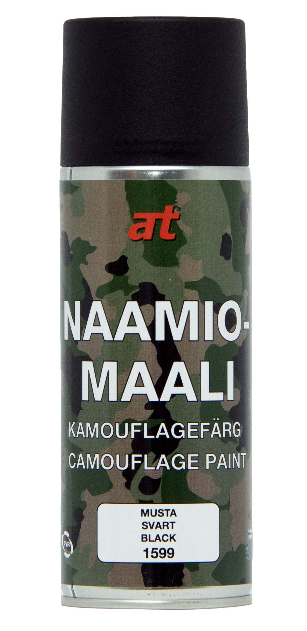 AT-Naamiomaali on heijastamaton mattapintainen naamiospraymaali ulko- ja sisäkäyttöön.