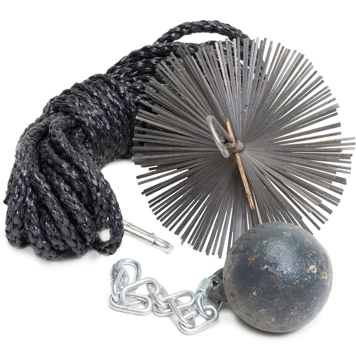 Paketti sisältää 150mm nuohousharjan, kuulan sekä 10 m pitkän köyden.